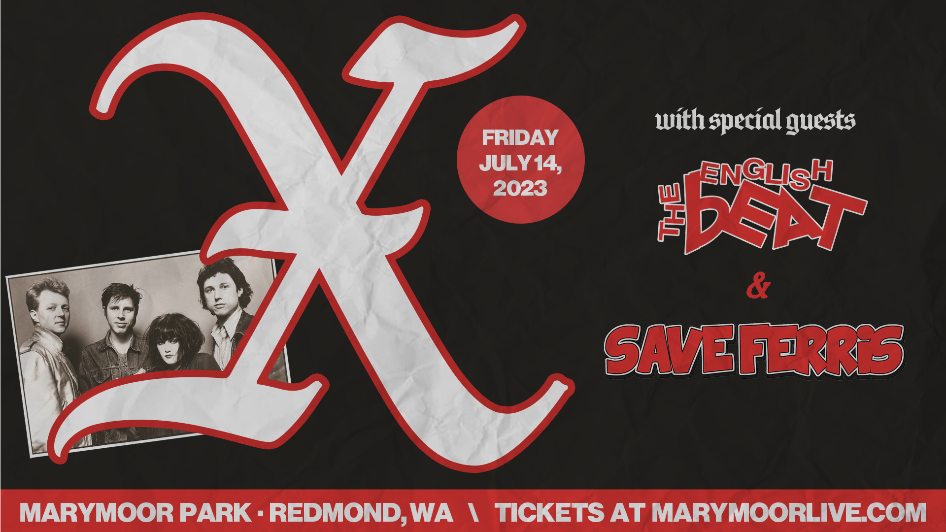 X just wrapped a hugely successful Summer tour in June, July and September during which they were joined by Folk Uke, The Damned, Reverend Horton Heat, and Billy Idol before wrapping up with Squeeze in late September. Earlier this year the band re-entered the recording studio for the first time since 1984. In two days, with producer Rob Schnapf, five new songs were recorded and release plans are pending.